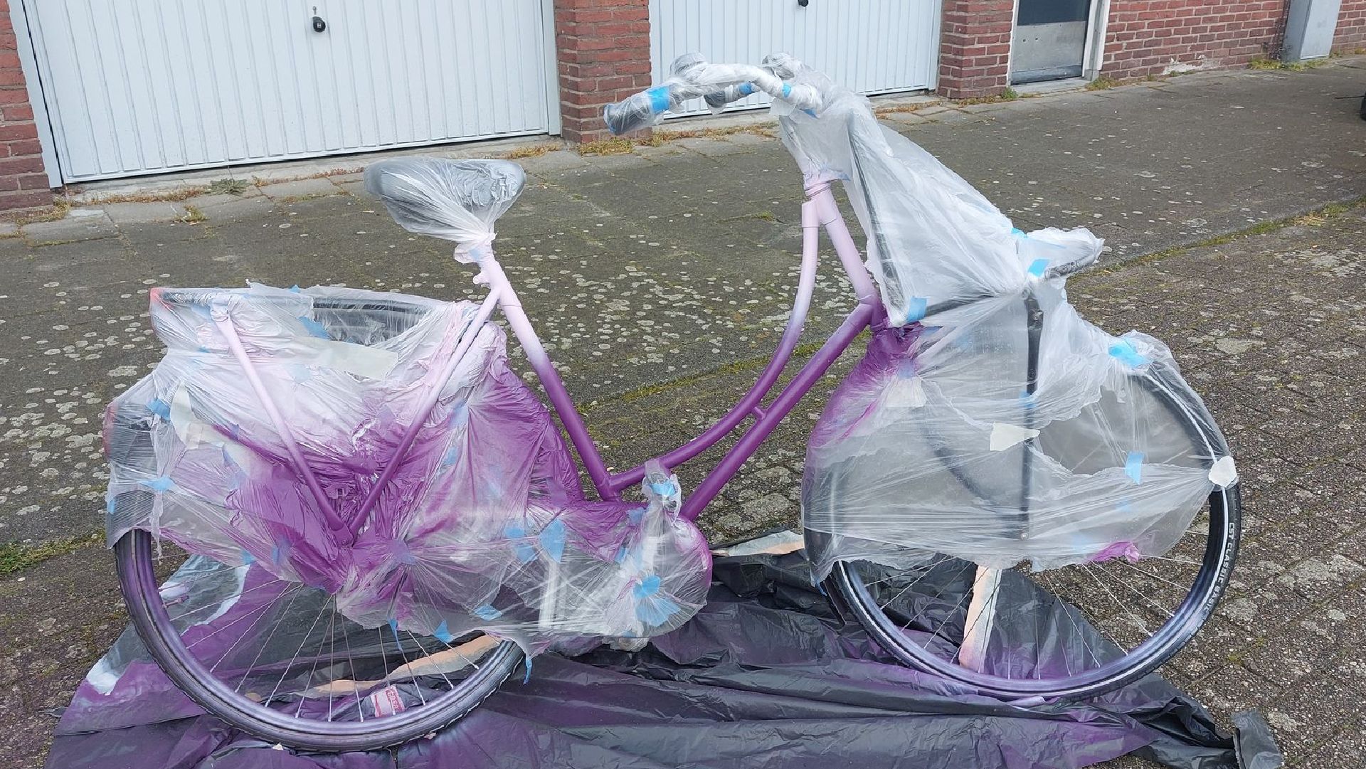 Om mijn fiets wat op te fleuren heb ik hem met graffiti een nieuw kleurtje gegeven en is ie na 8 jaar weer zo goed als nieuw! Met een primer en topcoat zorg ik ervoor dat hij nog steeds bestendig is tegen regen en af en toe een stootje!